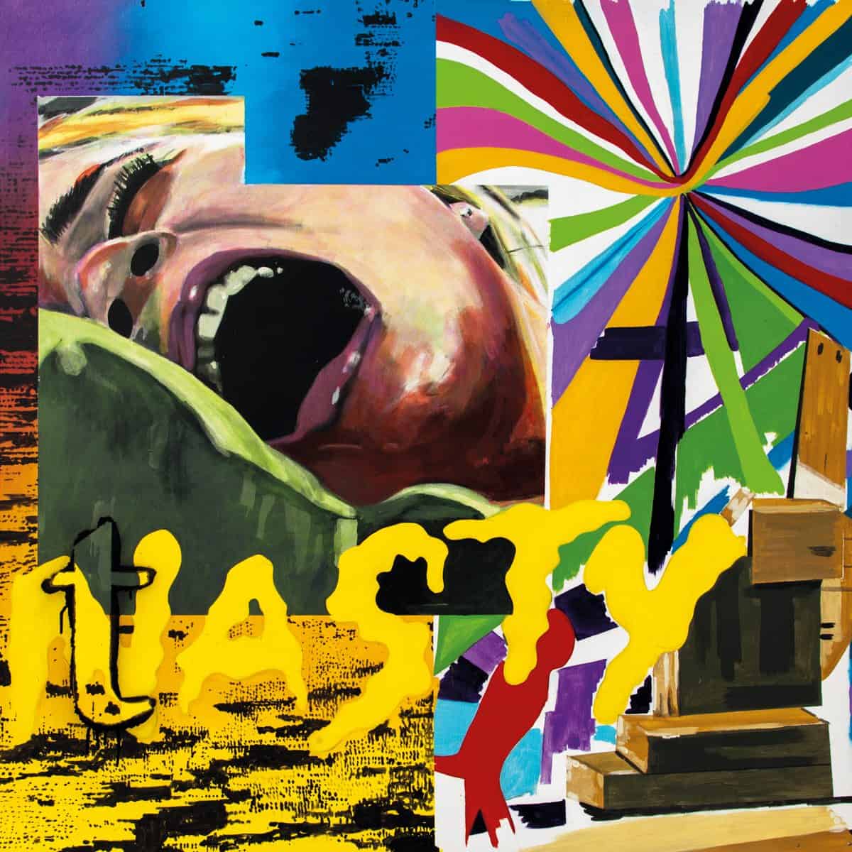 Acrylic, vinyl, oil pastel & paint marker on canvas 120 x 120 x 7 cm 2014